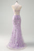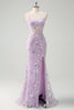 Lila Meerjungfrau Spaghettiträger Korsett Pailletten Langes Ballkleid mit Schlitz